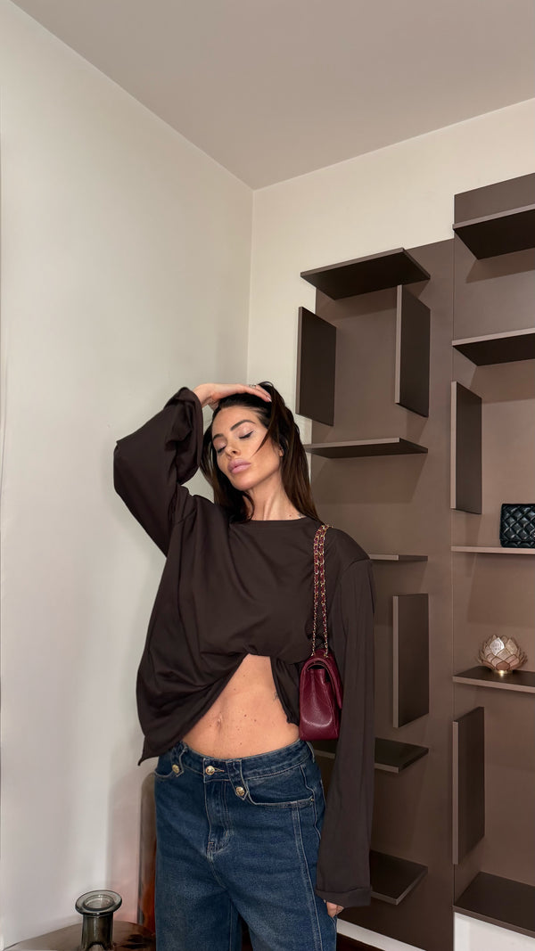 Maglia in cotone, presenta spalline strutturate, manica a campana